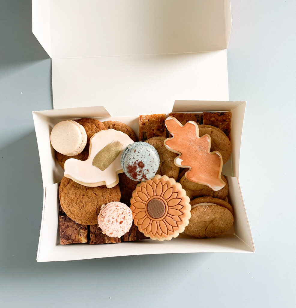 Contains cookies, mini Sammy’s, mini bars/brownies, sugar cookies, and macarons.