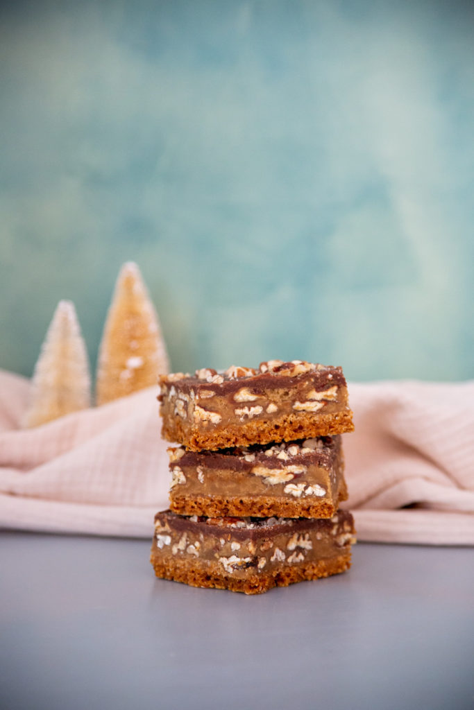 Our holiday favourite! The famous turtles bars have a graham base, rich caramel with toasted pecans, topped with a milk chocolate ganache.